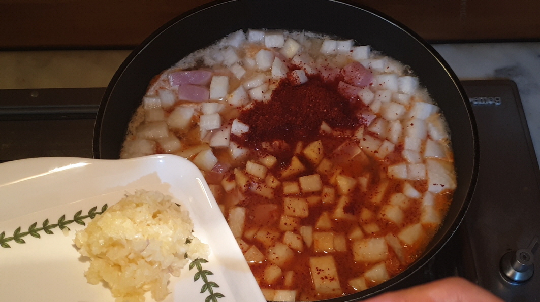 양념의 색깔이 진하게 우러나왔습니다. 후추도 추가를 했습니다.
